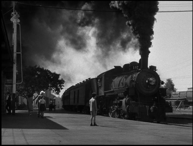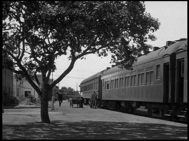 Anyways, the two train scenes in this picture feature steam engines and old heavyweight passenger equipment. The coming and going of Uncle Charlie (Cotten) happens at the Santa Rosa train depot which is still in existence as a visitor’s center.
