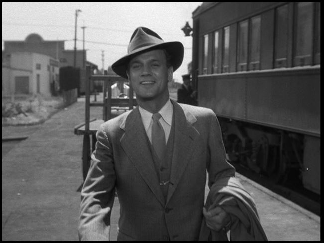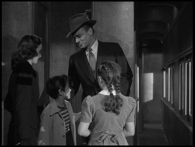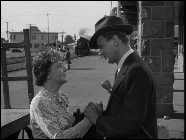 Well, hello there! Teresa Wright (Yowza!) is all smiles as she spots Uncle Charlie trainside.