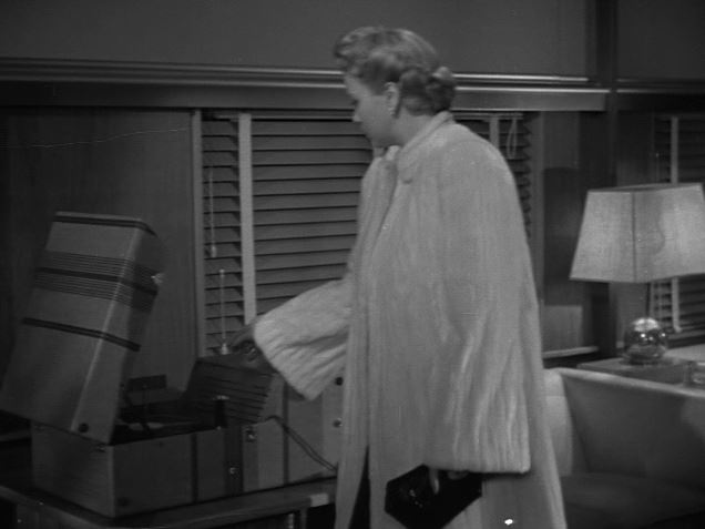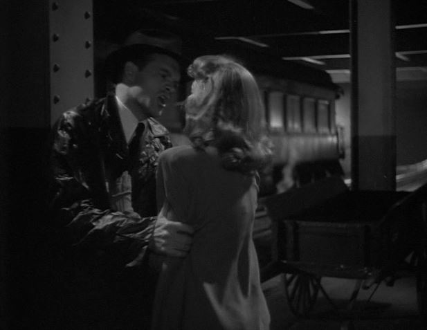 After receiving a threatening phone call from Turk, diva Mida King (played by Patricia Dane) hurries down to G.C.T. to hide in her current paramour’s private car. Unfortunately, the heavyweight observation car is no sanctuary, with Mida being carted off the rear platform to the morgue.
