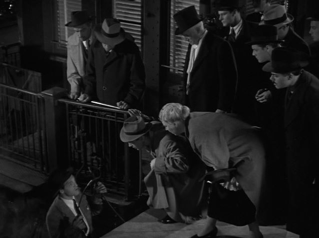 Dang, Virginia Grey makes great arm candy for Van Heflin as he questions suspects at the murder scene.