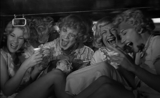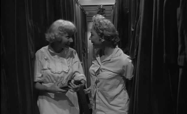 I swear that looks like Angela Lansbury on the far right, but she’s nowhere listed in the film’s credits. It was most likely actress Joan Shawlee who played bandleader Sweet Sue.