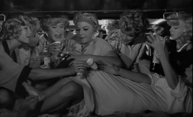 A sweet, young thing asks Tony if he’s got any mixer. How many girls can fit in an upper berth? I never did take a count. Surrounded by shapely legs, Tony asks Jack how the heck this all happened.