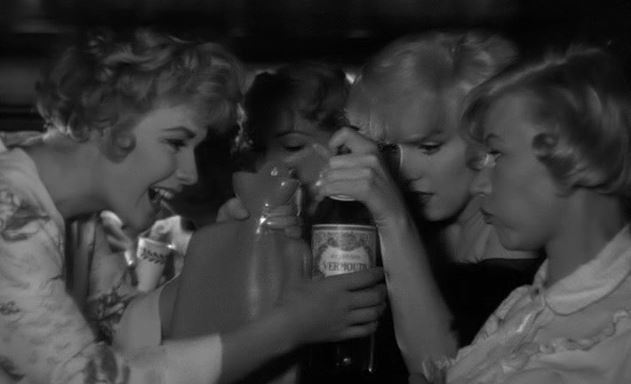 The gag is, the movie takes place during Prohibition and Sweet Sue allows no drinking. So naturally, all the girls drink and have spirits on their person or close at hand.