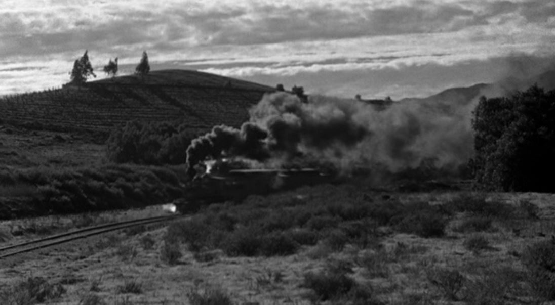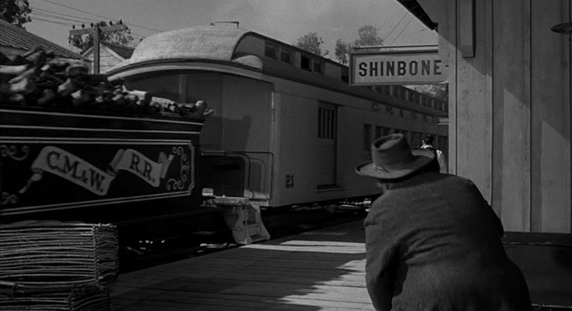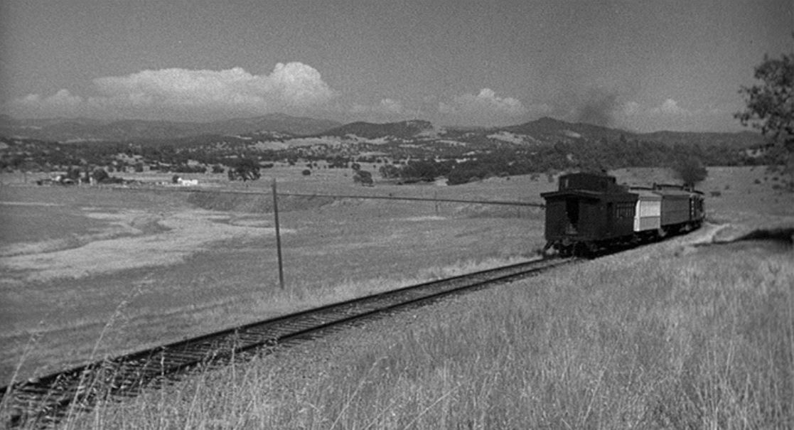 Let’s take a closer look at the three, distinct scenes in “Liberty Valance” of a steam engine-powered passenger train.