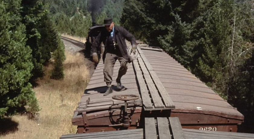 Oh, the actors? Well, filmmakers brought on board three ENORMOUS hams, Borgnine, Marvin and Carradine, but I’ll be ignoring them for the most part. There’s far too much steam locomotive pulchritude to savor instead. Highball!