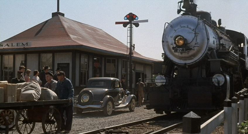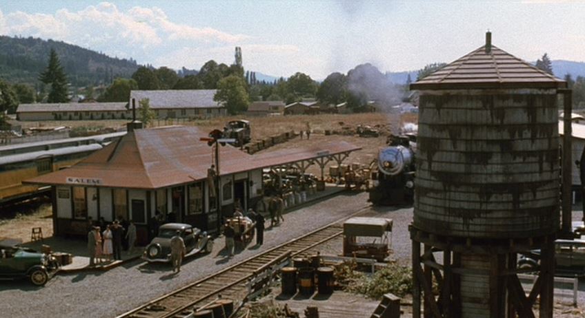 The passenger train arrives in Salem, Oregon (most likely the OP&E depot in Cottage Grove). Love that lower-quadrant station order board!