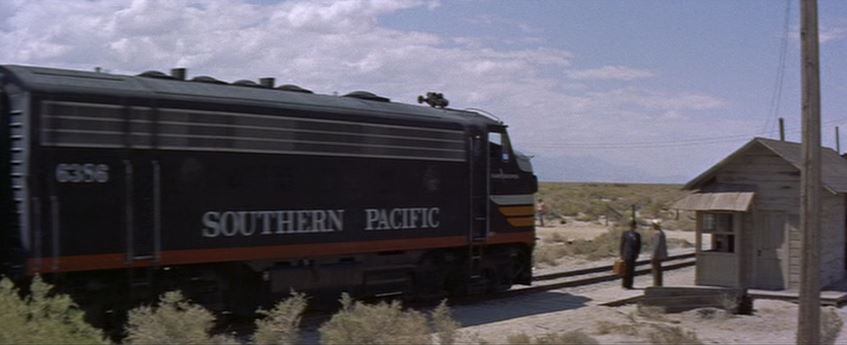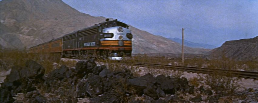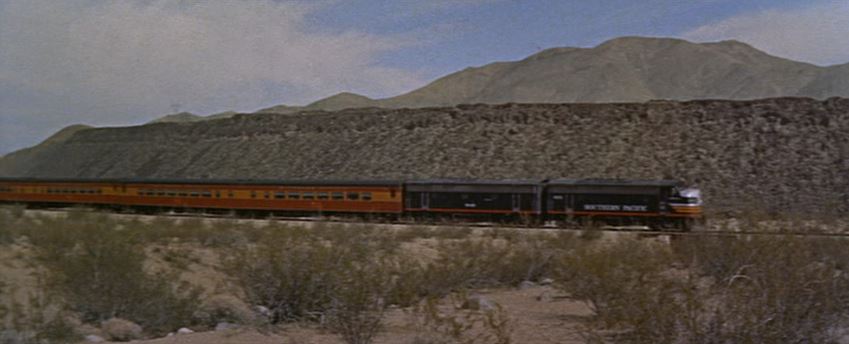 Wow, what an opening! Southern Pacific Railroad hosted one of the most spectacular railroad-themed opening credits ever done for a movie. The star is an SP passenger train in splashy “Daylight” dress led by a pair of equally classic “Black Widow” EMD F units.
