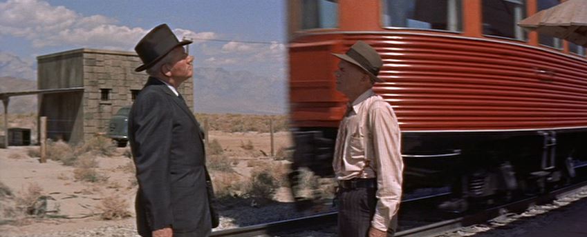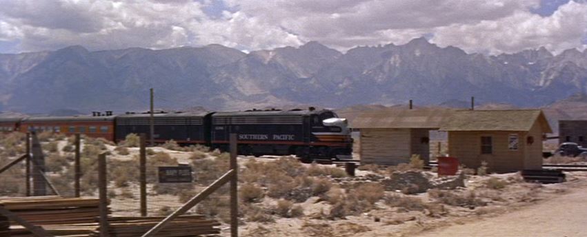 Helicopter shots, distant shots, pacing shots were all added by associate producer Herman Hoffman after principal photography had ended. Test audiences had been unimpressed with the rather bland movie opening, so MGM rented a couple trainsets from Espee for filming on SP’s “Jawbone” line near Lone Pine, CA.