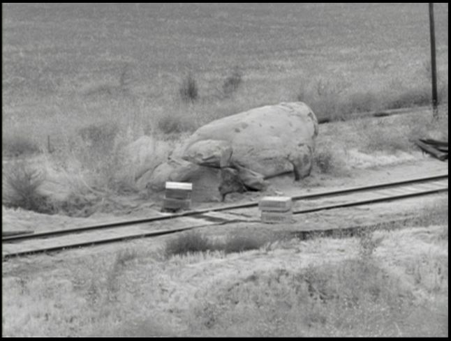 Here we find Inyo wearing its #22 and pushing a work car of “golden spikes” along the tracks in a curious scene (it’s how the bad guys transport their loot – long story).