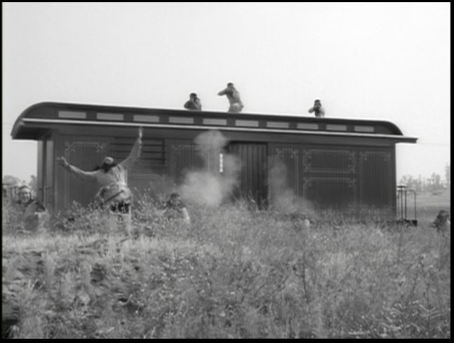 Surprise!! Jim and Artie have armed the Indians with Winchesters who then proceed to decimate Leslie Nielsen’s bad guys in a great train side shoot-em-up.