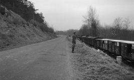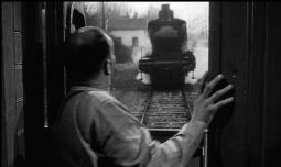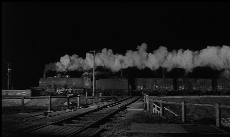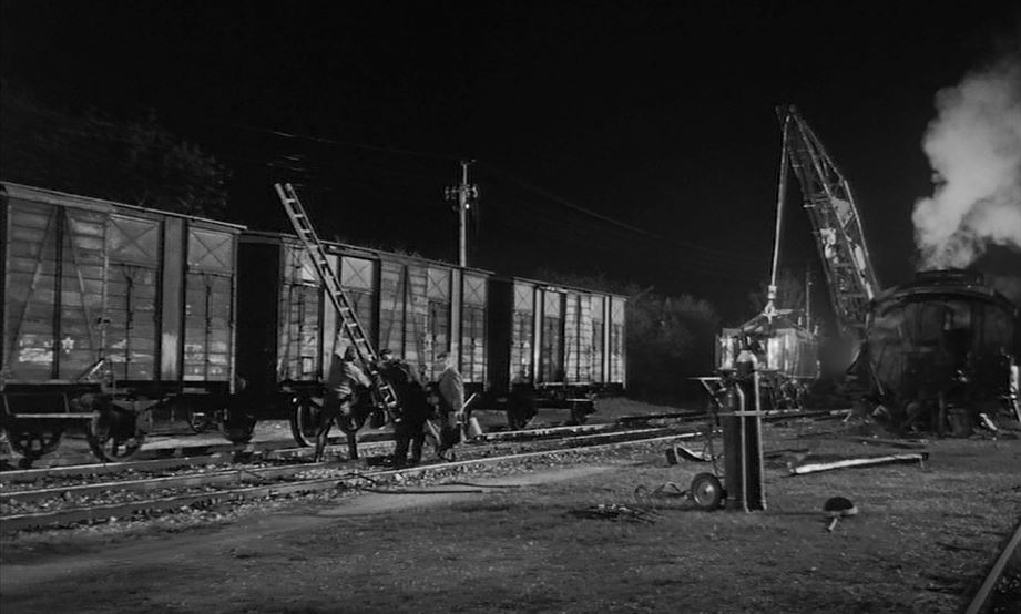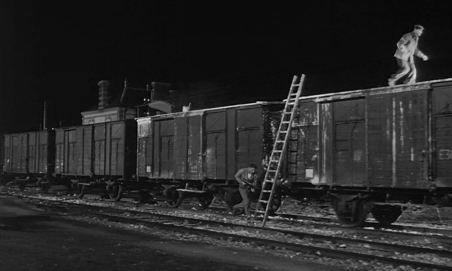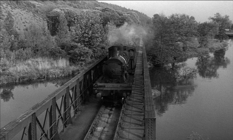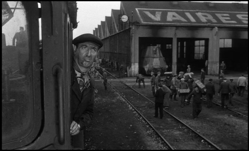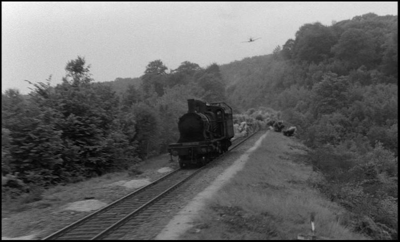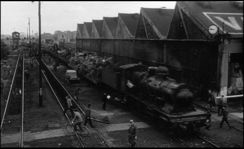 Unknown to the Germans, the railway workers have looped the train back towards Paris and re-signed their route to complete the deception. The level crossing screen capture seen here is truly O. Winston Link quality.