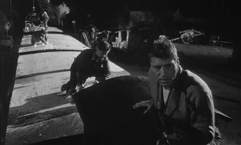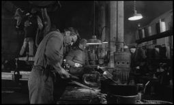 The art train limps into Rive-Reine. Papa Boule has sabotaged the wheel bearing with a franc coin, but alas, the Krauts catch him at it, back at the shops. He’s toast.
