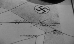 Approaching Metz, we get some artsy nighttime shots of the train and locomotive. Back in the rear coach, the Germans are carefully tracking their progress on a big map.