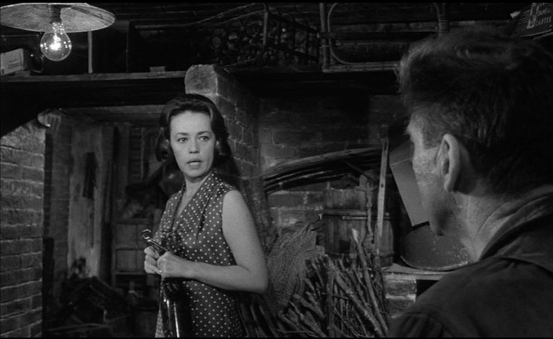 Romantic Interlude! Keeping the movie from being a complete weinerfest is the appearance of pouty innkeeper Christine (played by Jeanne Moreau), rahr-RAHR! This harkens back to another famous French love affair. Burt doesn’t exactly take up with la belle femme fatale, but maybe he revisits her later on…