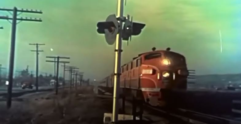 One of the first TV shows to be filmed in color, it featured a beautiful clip of a gyralite-flashing A-B-B set of Daylight-scheme Southern Pacific EMD E7 units on the Sunset Limited.
