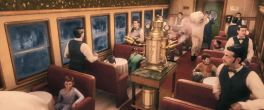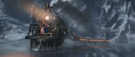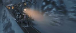 Continuing the theme of impossible adventure, we find the Polar Express spinning and sliding around as it crosses a huge, frozen-solid lake. Great views of the engine and cars, though.