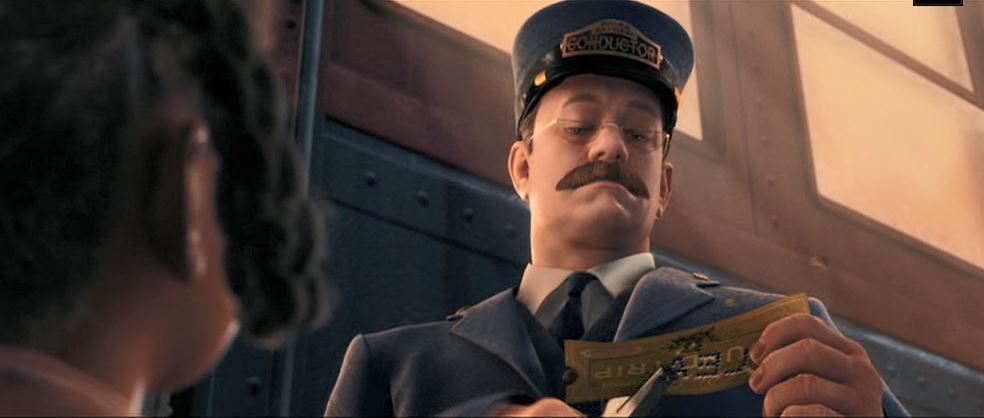 Before the kids board for the return trip home, Conductor Hanks punches the remainder of their tickets. Hero Boy’s golden ducat now spells out “B-E-L-I-E-V-E”.