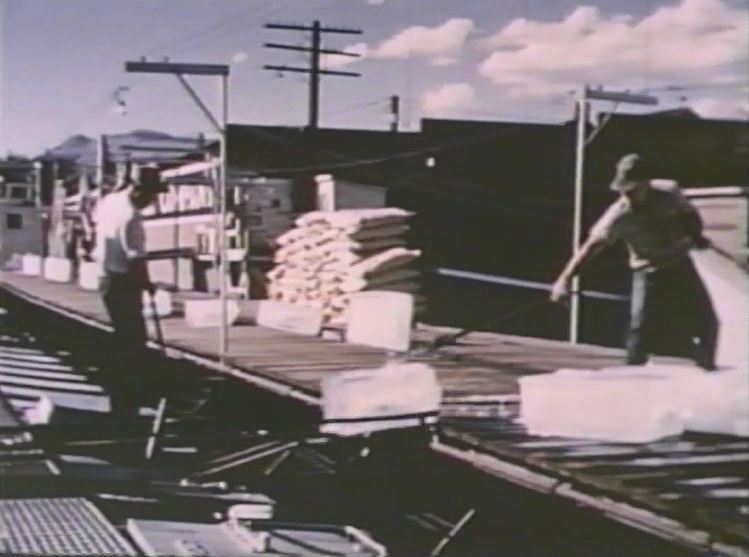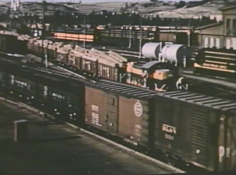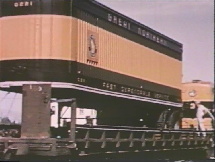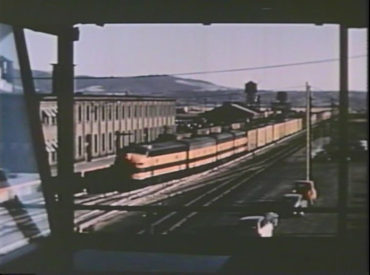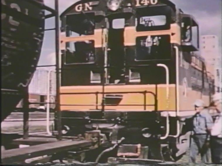 Steam ran on the GN up until late 1957 or early 1958. Behold the film’s only shot of a working steam locomotive. It looks like an “O” class 2-8-2 on a freight somewhere in Minnesota. This also helped me date when this film was made — as there was no year shown in the credits.