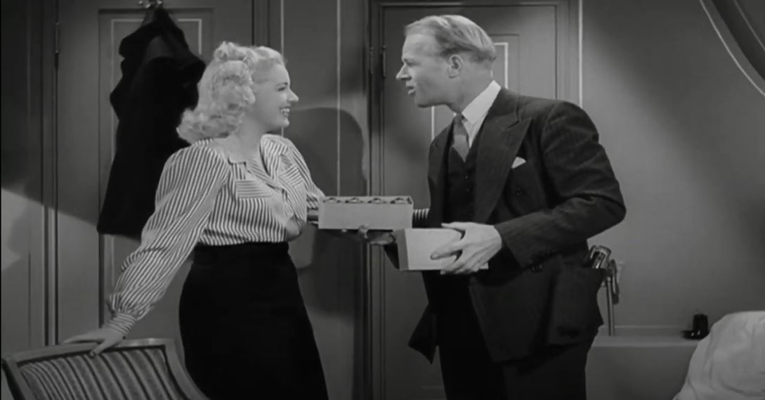 Just before train time, Detective Shayne runs into Ace Reporter (and former girlfriend) Kay Bentley (played by Lynn Bari).