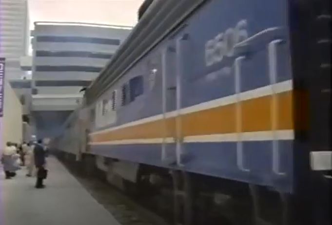 Just like that, we’re arriving in Reno, Nevada. This was filmed at the CP Lethbridge, AB passenger depot. Leading the train is former CN FP9A #6511 and CN FP9A #6506. Both locomotives are still around as can be seen in the above link.