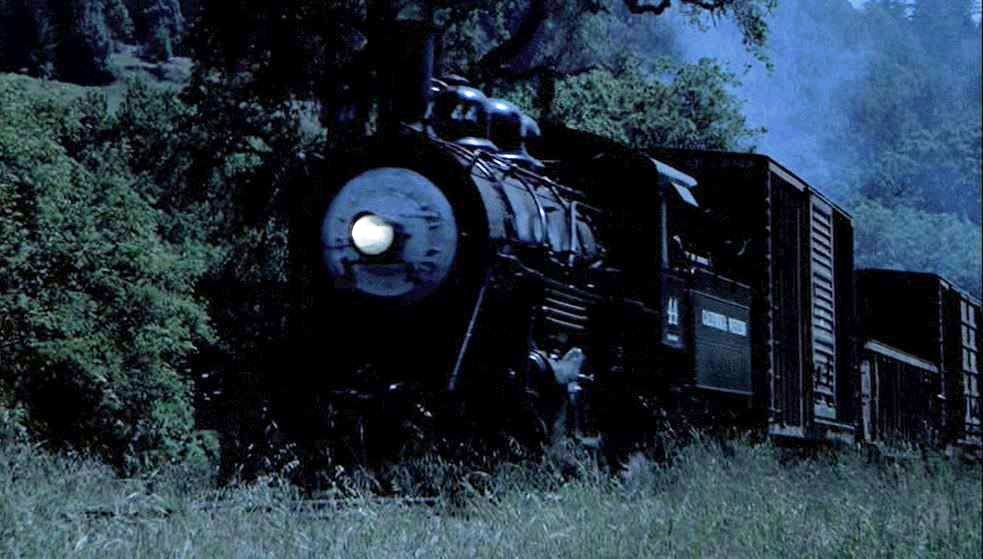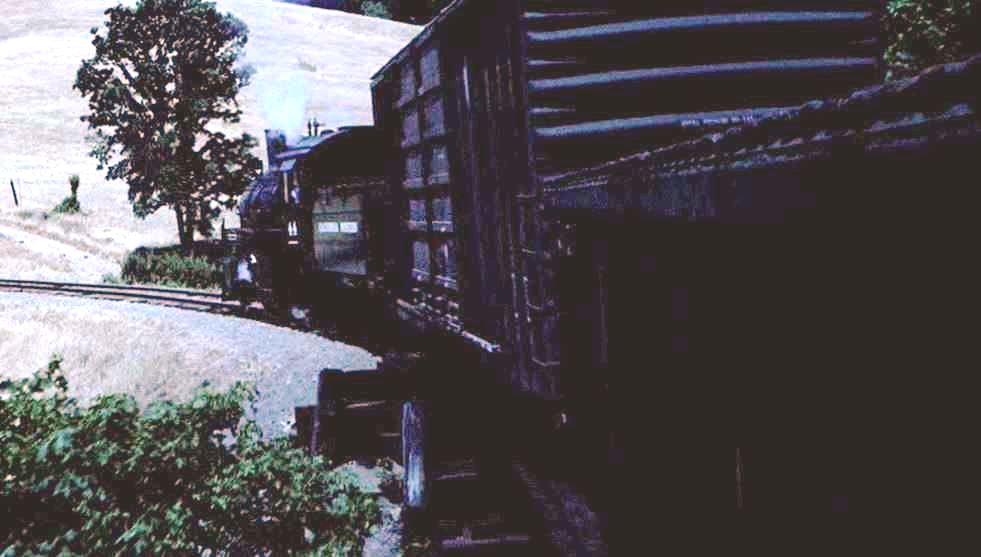 Here comes California Western #44 with a short freight as the picture begins. It was renumbered #44 after a rebuild to operational status specifically for this movie. Later, (movie’s ending), the 2-8-2 would get her #45 back.