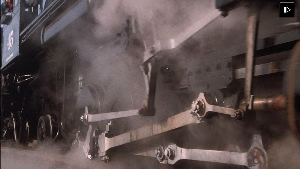 The next train scene is 51 minutes in. It’s night time (shooting day for night). Nicky & Hopper hear the approach of the steam locomotive. Nicky challenges him to “Race with me, Hop!”