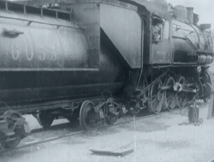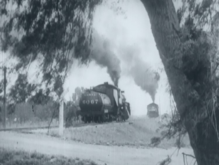 The next morning, a dejected Helen (looking fabulous in her full-length, leopard skin fur coat), is being taken away on The Limited by dear old Dad. Meanwhile, John gets his orders. He is to run light engine (LA&SL #6053 Baldwin October 1907 2-8-0) ahead of The Limited to Fillmore.