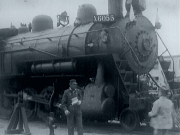 This must have been filmed on another day. Suddenly, John/Helen are in the 6055 and Dad is riding LA&SL #6067 Brooks built (Alco) February 1908 2-8-0! Maybe no one will notice…