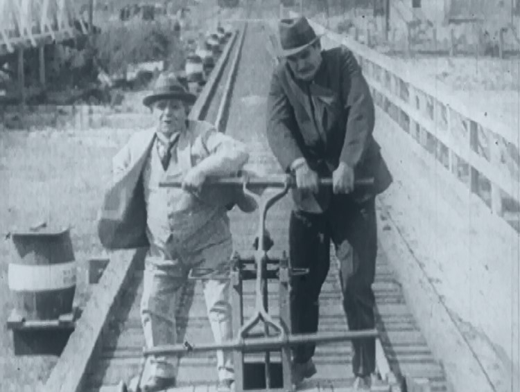 Desperately, Helen’s Dad requisitions a handcar and soon he and Haggarty are pumping along — Alas, too late to stop the wedding.