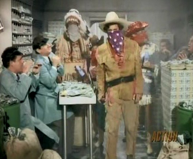 In this second episode of a two-parter, Batman (played by Adam West) and Robin (played by Burt Ward) are battling Shame (a parody of Shane) and his gang, whose plans include robbing a train of a large sum of legal tender.