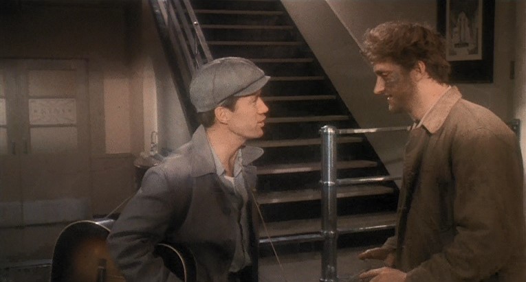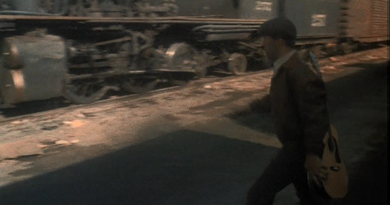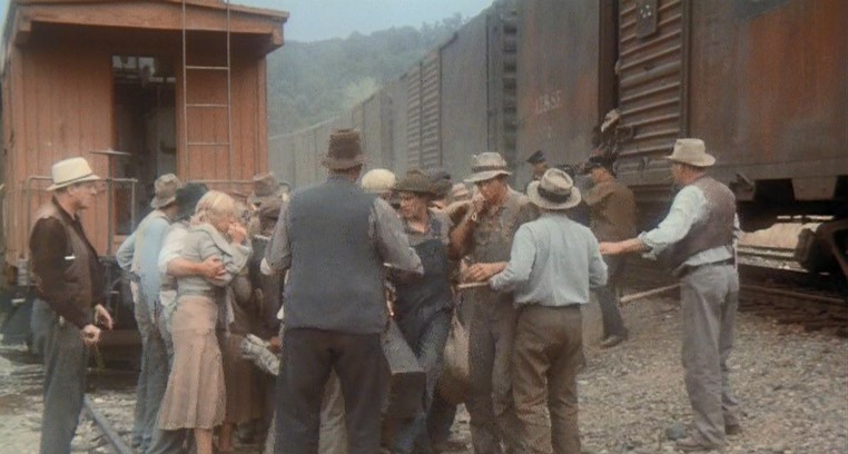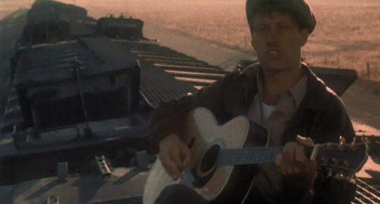 Anyway. Back to the train scenes. Artist Woody flips out over his sponsors limiting what he can sing, hops a train out of town, and takes his music directly to the people in the migrant camps.