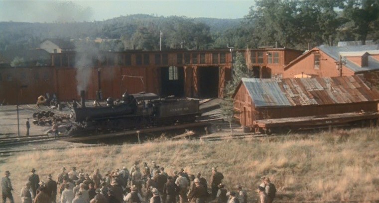 Train scenes were filmed along the Western Pacific, Tidewater Southern and Sierra Railroads. Let’s jump right in and enjoy THIS TRAIN-laden bio pic.