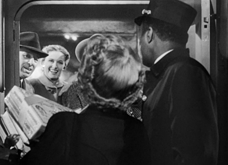 Clutching her Whitman’s Sampler box, Myra is given a big send off from the car vestibule as the Porter prepares to close the dutch door.