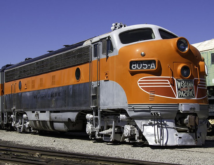 Is that lead engine smiling? ;p Western Pacific’s passenger diesels get my vote for the splashiest nose art and logo, EVAH.