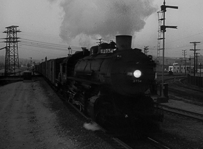 As always, I’m gonna concentrate on the railroad pulchritude and leave the plot and gangster genre for others who may follow. C’mon, let’s check out trains from NYC, Pere Marquette, C&NW, Pennsylvania and Union Pacific railroads!