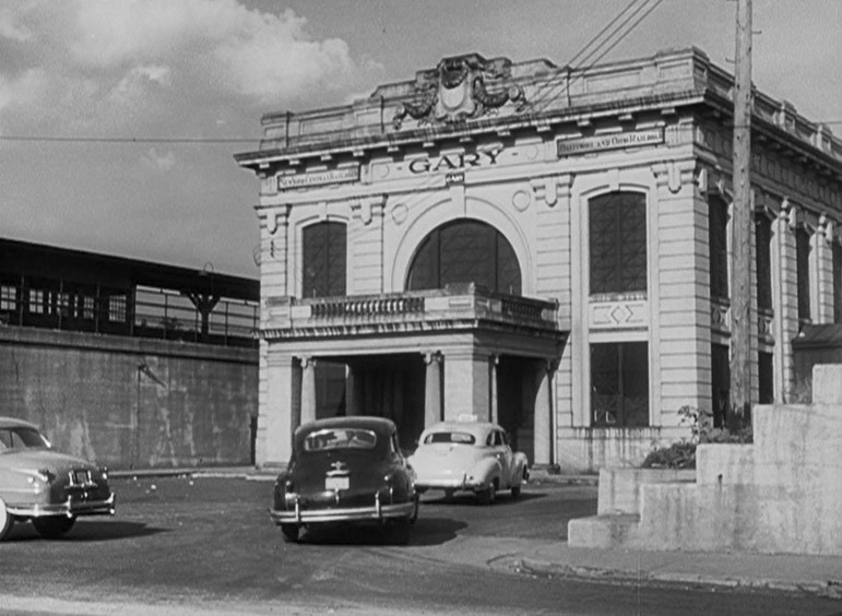 Gary (Indiana) Union Station was a beautiful structure when constructed in 1910 – as well as a pivotal plot point in this movie. Located between the New York Central and Baltimore & Ohio mainlines, both roads were served by this two-story edifice.