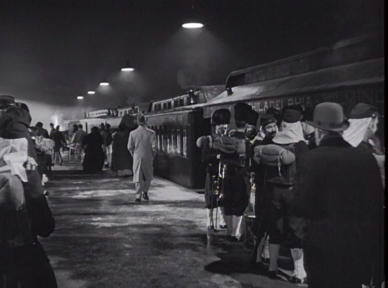 Guided by only a switchman’s lantern, #11 and train slowly back to the bumper post at MGM’s arched train station set (standing in for Camden & Amboy Railroad’s Jersey City, NJ terminal).