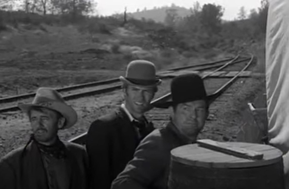 Clint Eastwood (Rowdy) poses with co-stars Paul Brinegar (as Wishbone) and Eric Fleming (as Gil Favor) alongside Sierra #3.