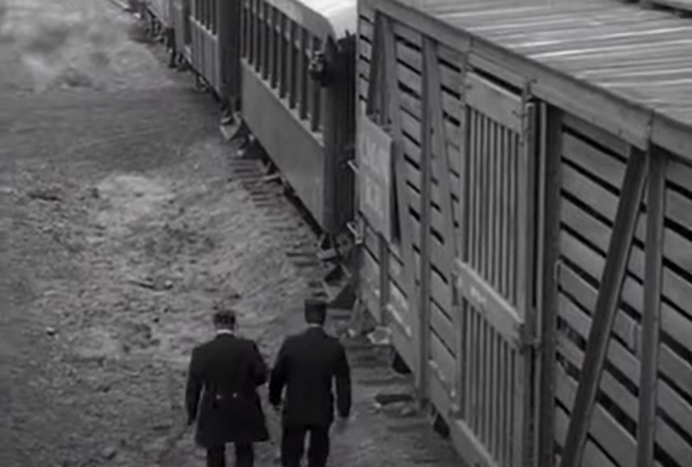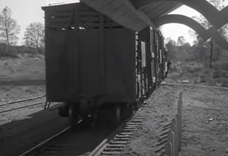 Meanwhile, we get a dandy sequence of the trainmen cutting off the stock cars and pulling ahead with the passenger train.