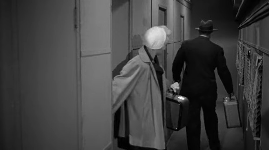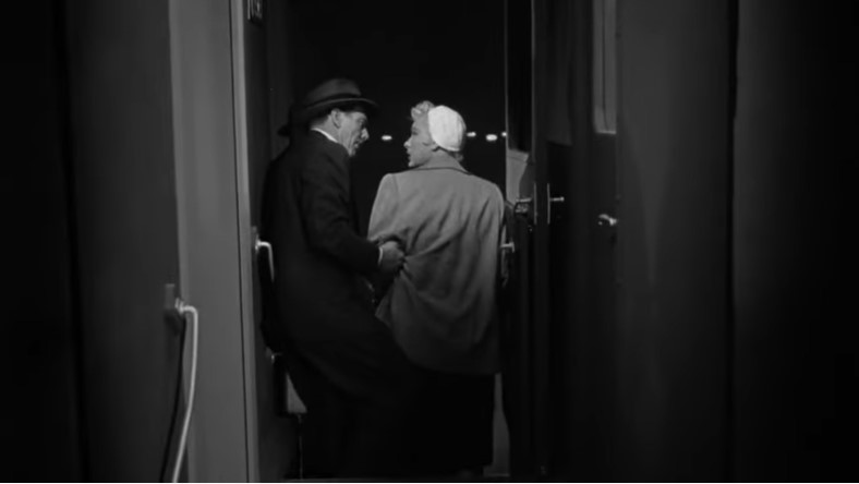 The matron has headed off to the diner. Detective Ray has always had his doubts about Eden’s guilt and the woman’s encounter with a supposed dead man clinches it. Ray sends the matron off to the dining car to get them some food. This is just a ruse. Ray and Eden are going to jump off the train!