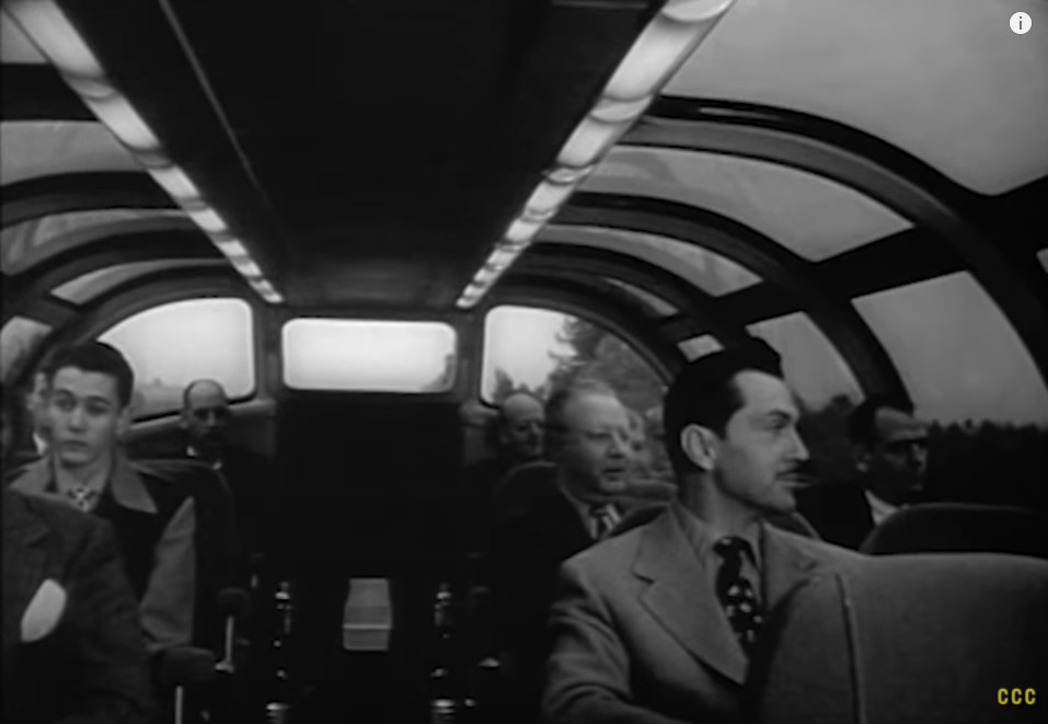 Courtesy of the Feather River Rail Society are a couple publicity stills taken in the dome and in the observation during filming.