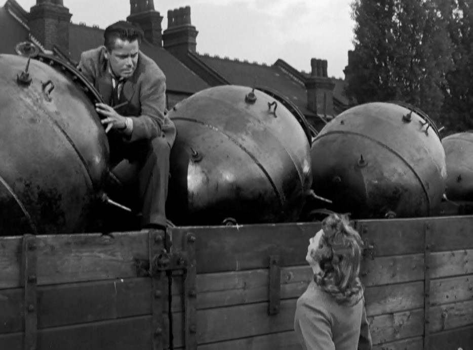 Filmed in Great Britain, Glenn Ford stars as the Canadian bomb expert Peter Lyncort, recruited to (hopefully) find and disarm a saboteur’s incendiary device on a trainload of mines headed to the Royal Navy at Portsmouth.
