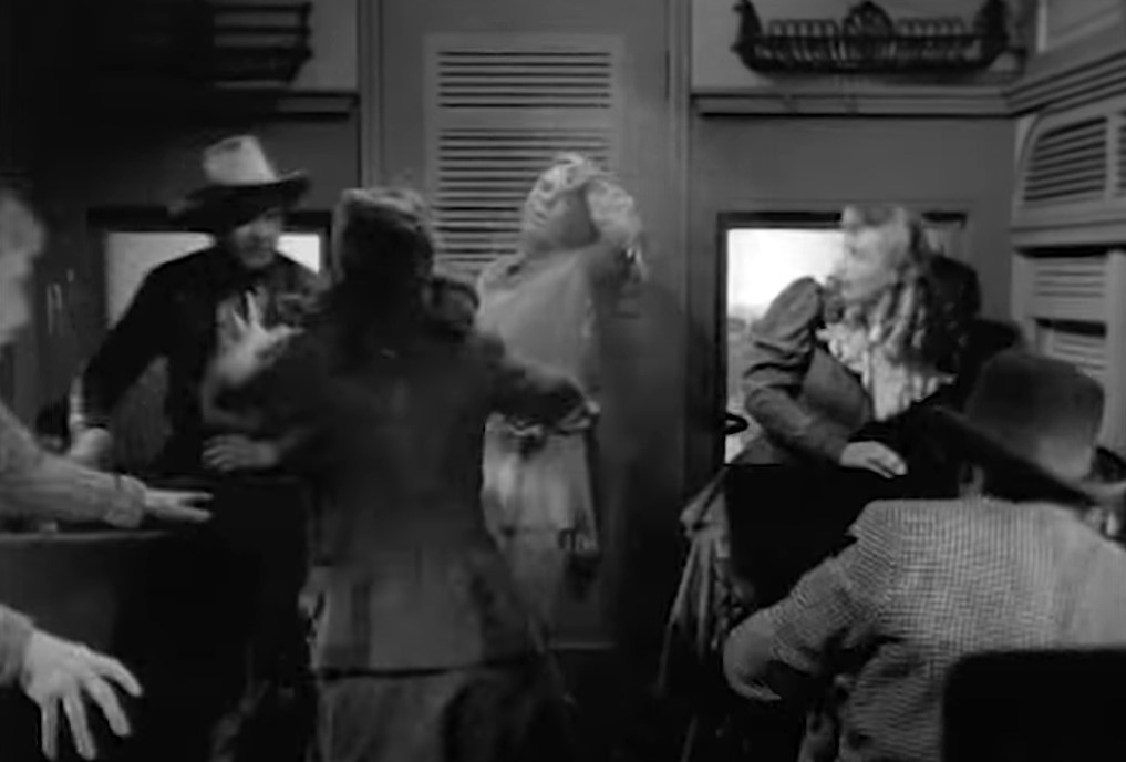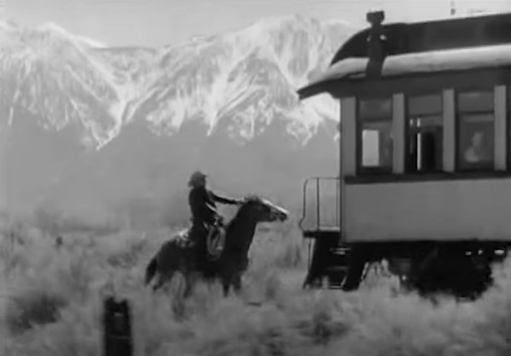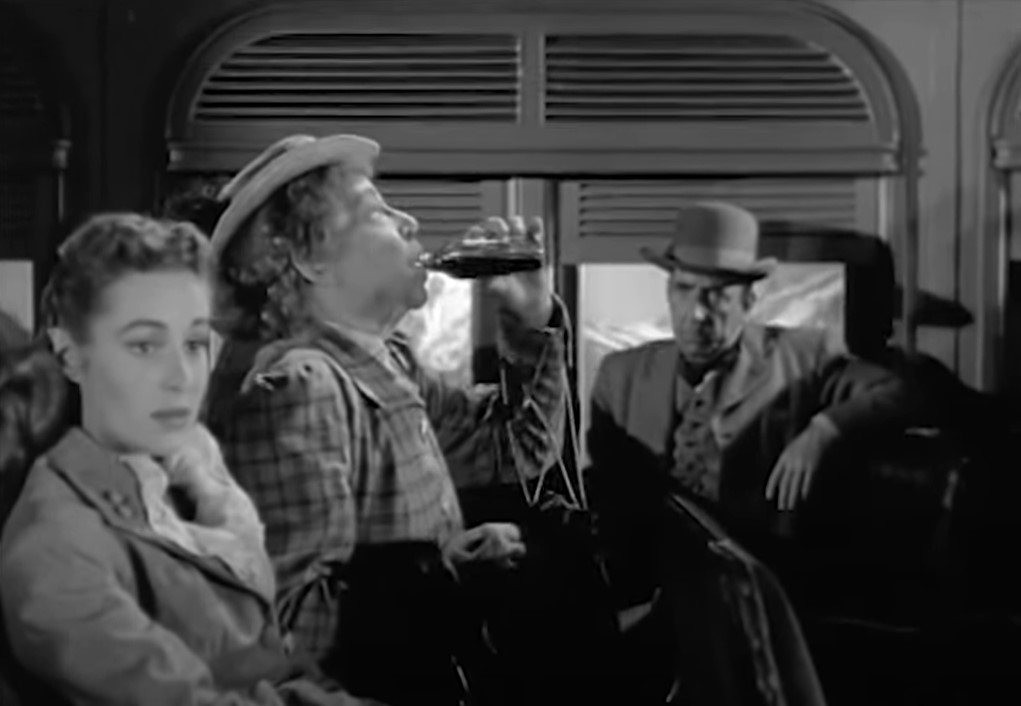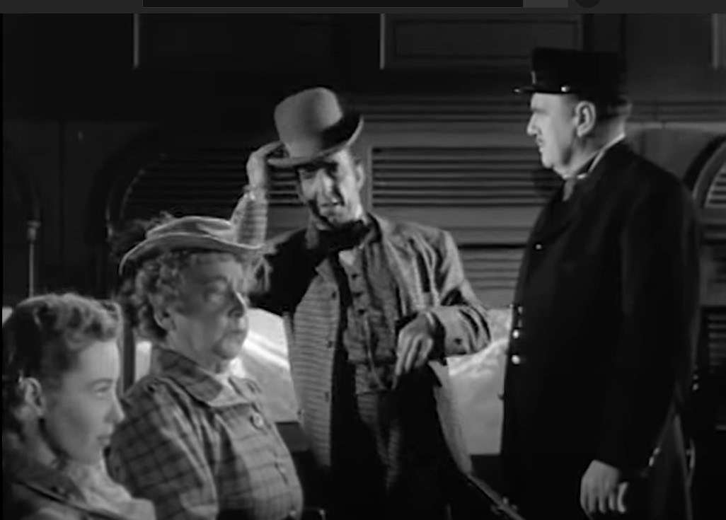 Coming in at less than an hour run time (56 minutes, 47 seconds), there’s plenty of action including TWO Indian attacks and a motley assortment of passengers including dance hall girls, a man of the cloth, a wheelchair-bound, but nubile young woman and her elderly, straight-laced companion, a traveling corset salesman and various ruffians and rogues.