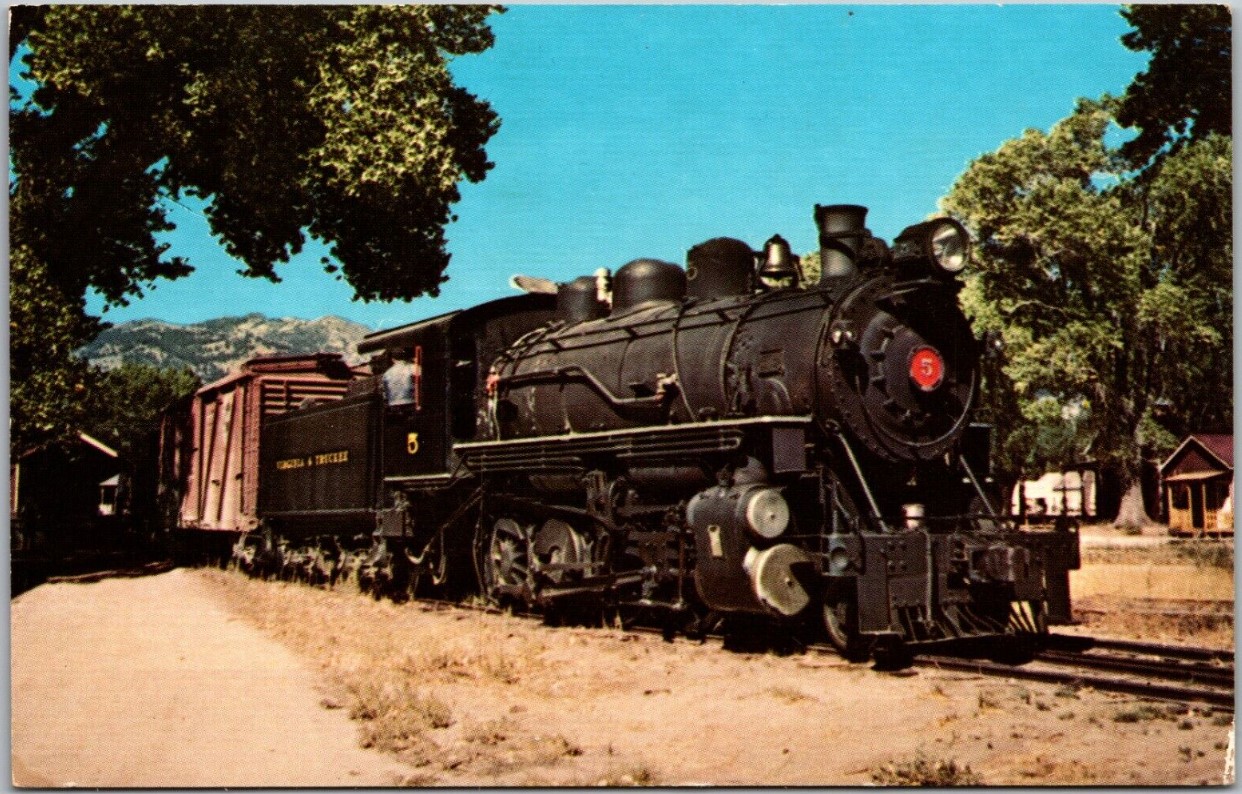 The above color postcards I found for sale on Ebay.com. The first is #5 switching in Carson City and the second is cars #23 & #18 at the Carson City depot. It’s possible the two cars were photographed just before filming of this movie began.