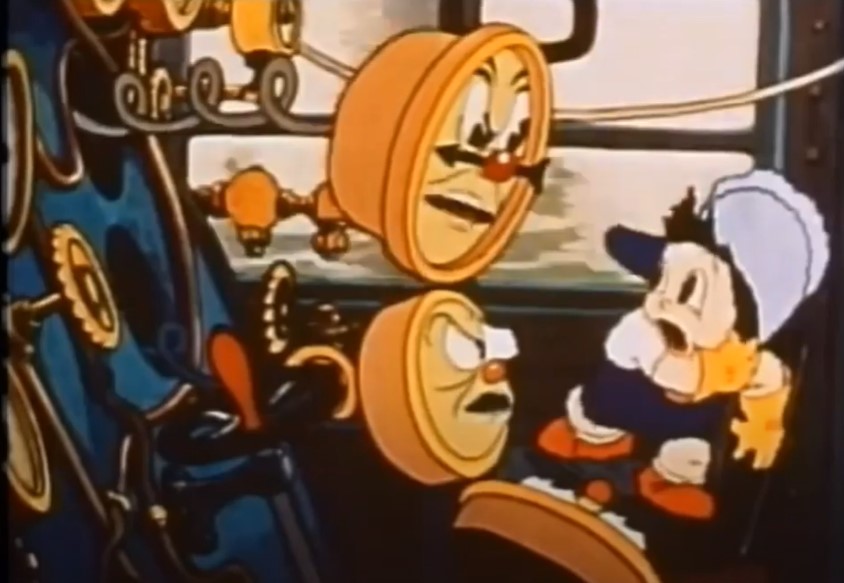 As Phil doesn’t know what he’s doing, the locomotive becomes annoyed with him, loudly hollering, “PLAY SAFE!”. Even the gauges come alive, which freaks him out.