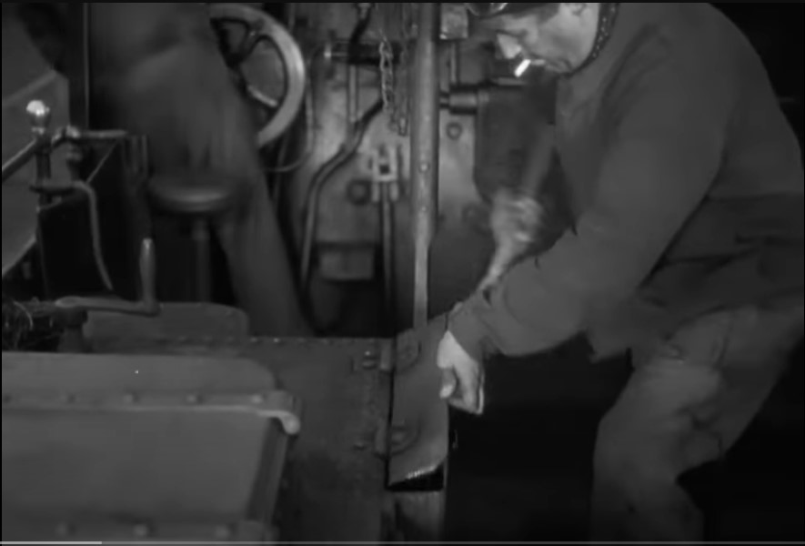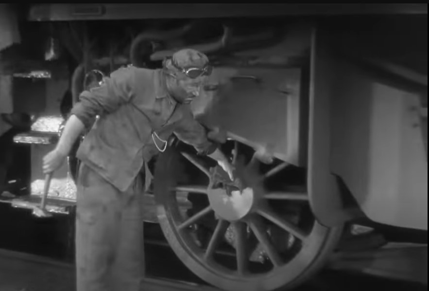3 – Like any good engineer, Jacques feels for hot bearings by hand and for flaws/cracks with a hammer on his locomotive.