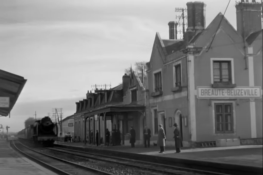 Passenger train pulling through Breaute – Beuzeville station.