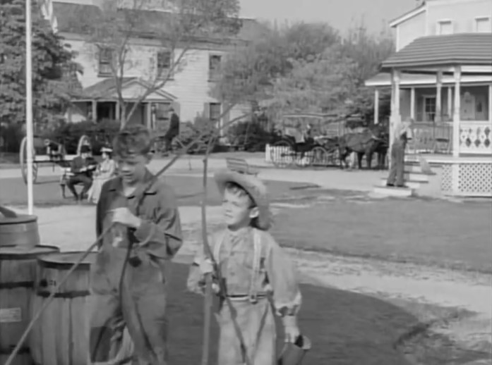 To his astonishment, Gart raises the window to discover he’s looking at an old-time village named Willoughby, complete with high wheel bicycle rider, bandstand gazebo and two barefoot lads with fishing poles. It’s positively Tom Sawyer-ville.