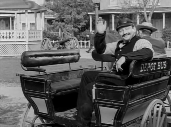 Why, there’s even a horse-drawn depot bus to take him to the local hotel. Sure enough, the 1888 conductor (played by James Maloney) walks down the aisle calling out, “Willoughby, This Stop is Willoughby.”