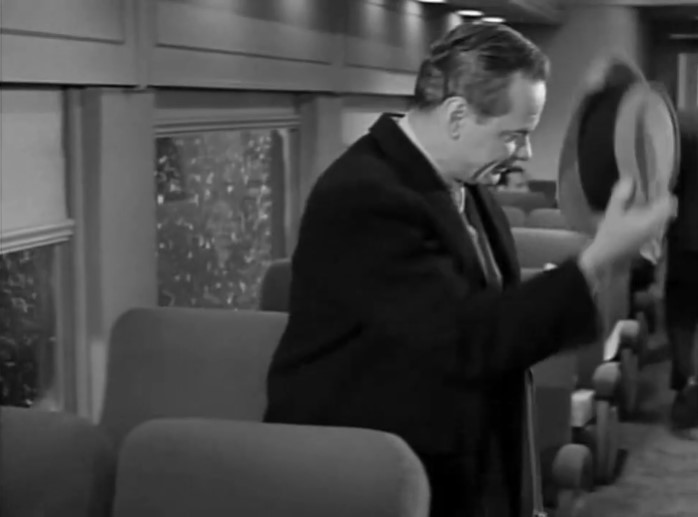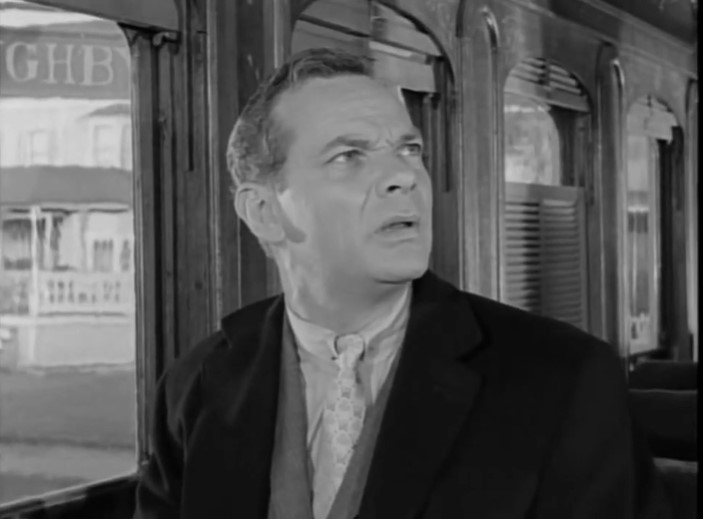 CONDUCTOR!! Another great face. Gart is freakin’ and once more finds himself back in 1960. “Willoughby. Next time, I’m gonna get off”, he vows. End second train scene at 17:25.